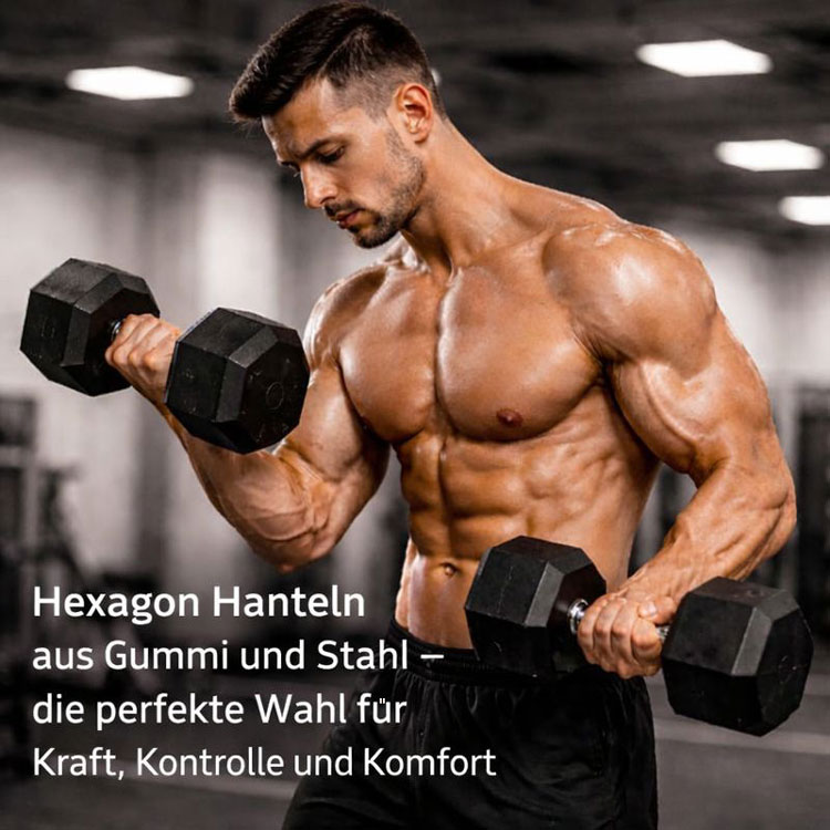 Hexagon ( 6 – Eck ) Hanteln Gummi und Stahl ( 1 Stück )
